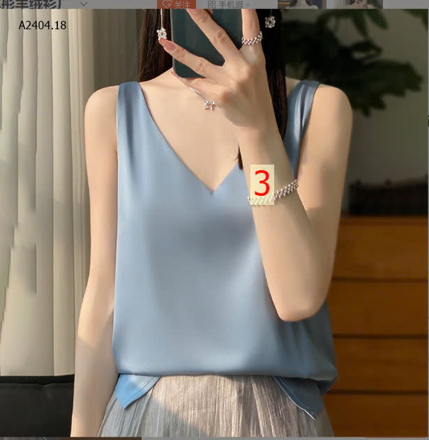 Áo lụa sát nách cổ V xinh mát, thoáng, mùa này mặc mê lắm ce ạ