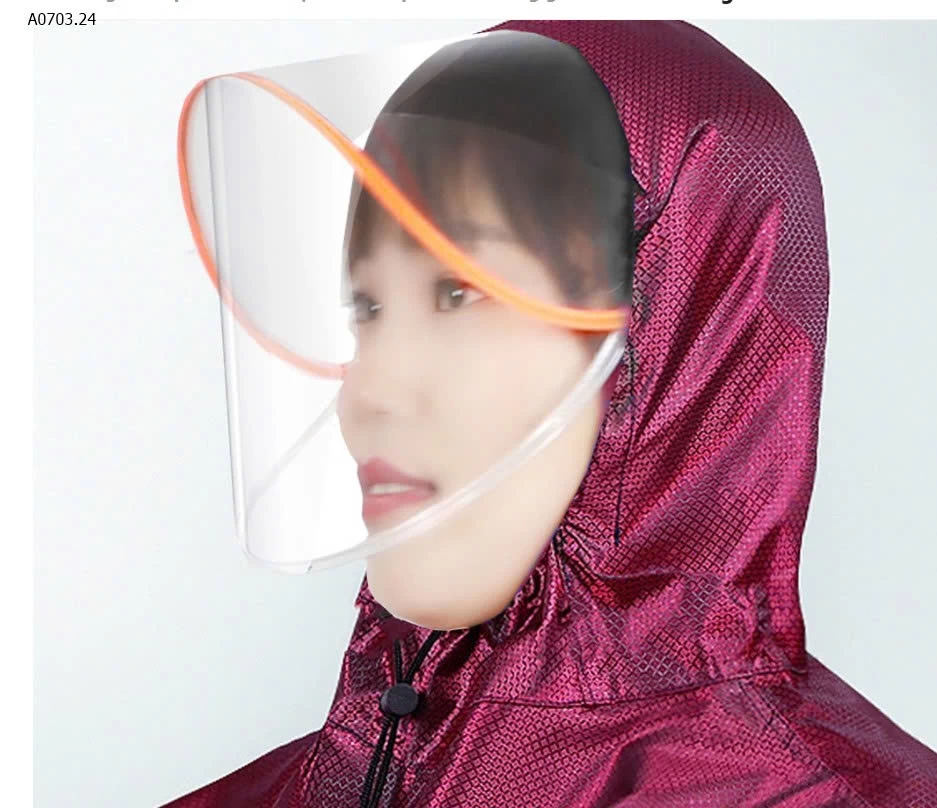 Thiêtd kế có mũ che dài và kính ngăn nc mưa hất vào mặt vừa đỡ rát mặt , chị em make up cũng k lo nước làm hỏng