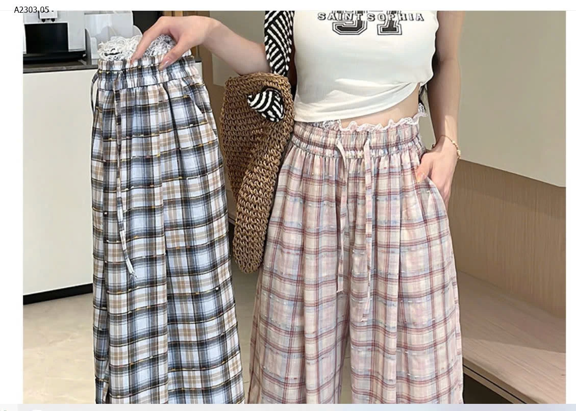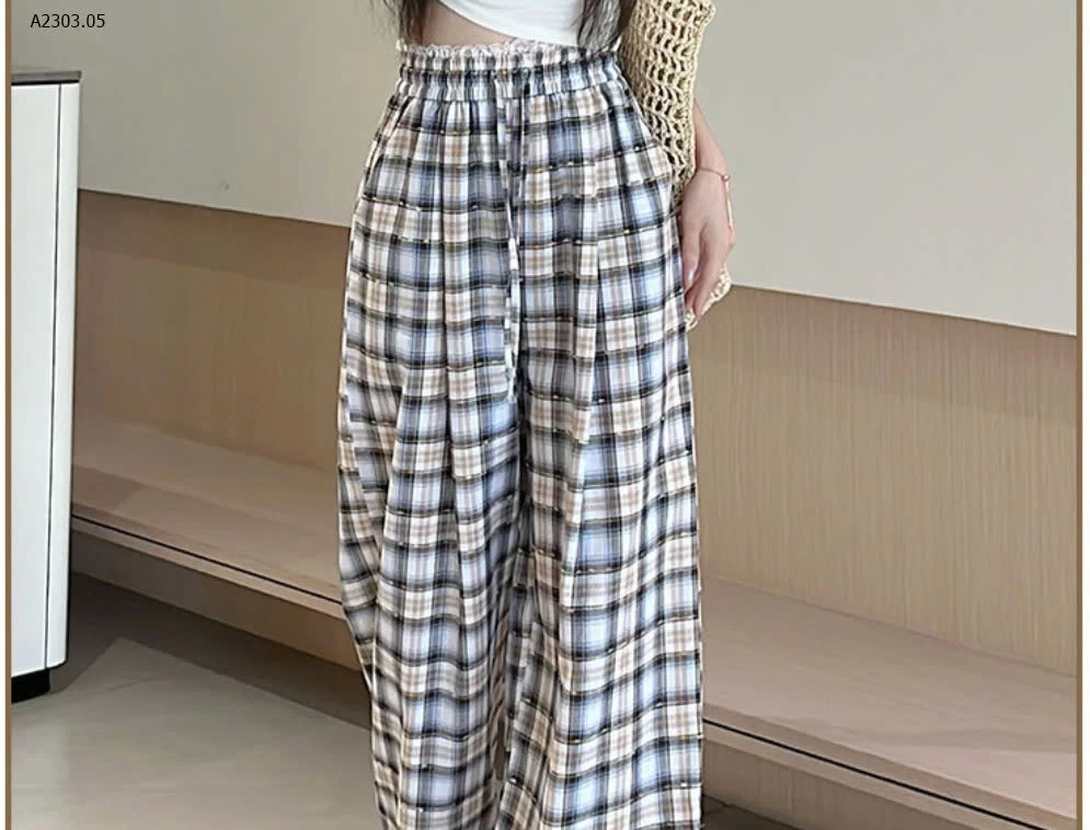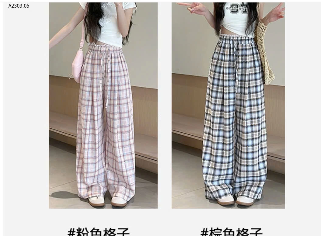 QUẦN ỐNG RỘNG KẺ CARO CHO NỮ - sỉ 154k
