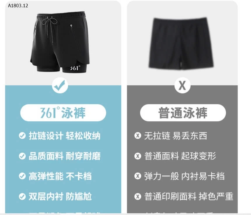 QUẦN SHORT ĐI BƠI 361 CHO NAM - sỉ 171k