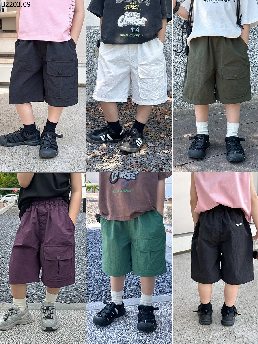 Quần short túi hộp trẻ em vải nylon crepe Elmo Baby gia si sz 90-150--- G.i.á 115k sz 160--- G.i.á 125k sz 170--- G.i.á 139k