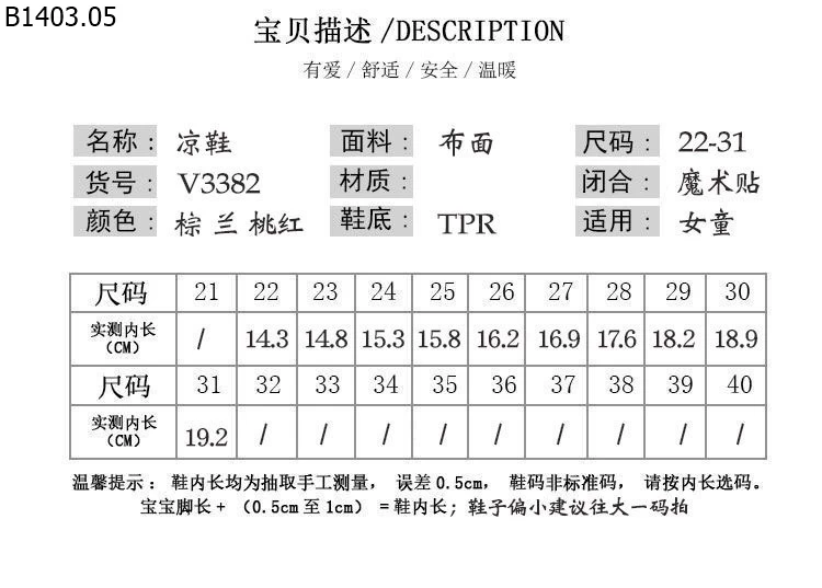 Size 22 -> 31 ( kèm bảng size )