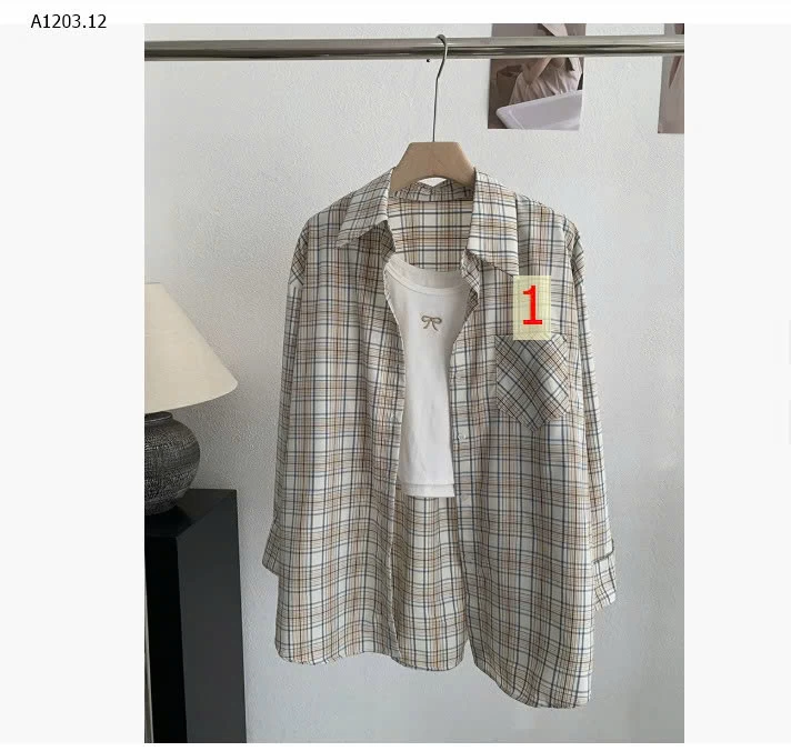 Set gồm 2 món: áo sơ mi caro khoác ngoài + áo thun bên trong, form rộng dễ mặc, phong cách trẻ trung năng động, dễ phối với chân váy hoặc quần jean.