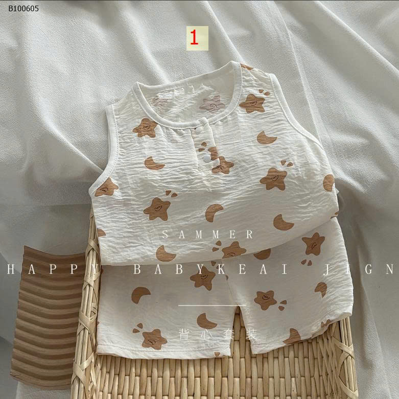 Tiếp nối thành công bộ ngắn tay e gom thêm bộ sát nách của bé nhé. Chất đũi hàn k nhăn mặc mát vô cùng luôn ạ