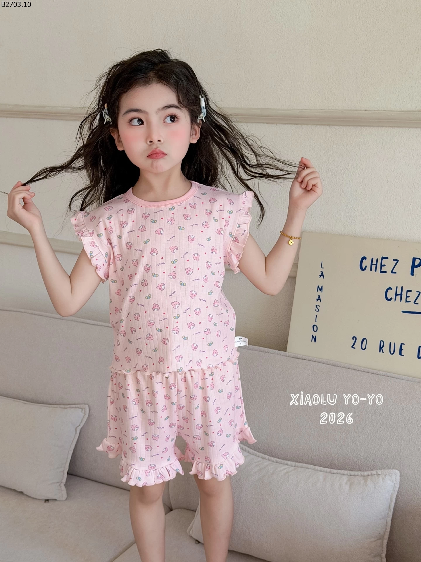 Bộ đồ ngủ ngắn tay in hoa mùa hè mới năm 2026 si 123k