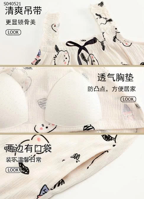 Bộ mặc nhà 2 dây có đệm ngực