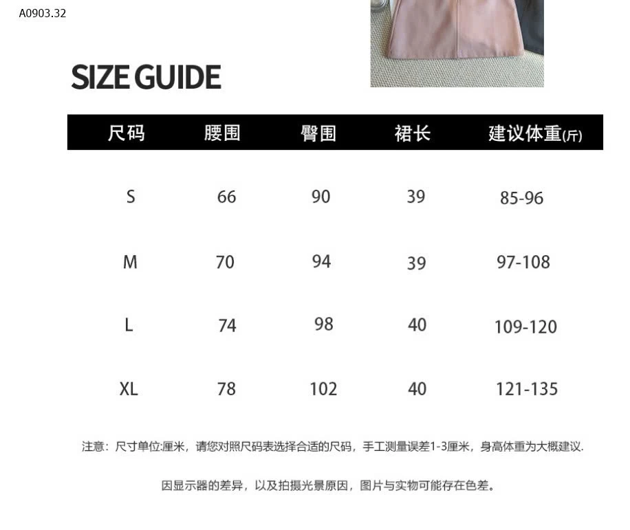 Bảng size tham khảo: