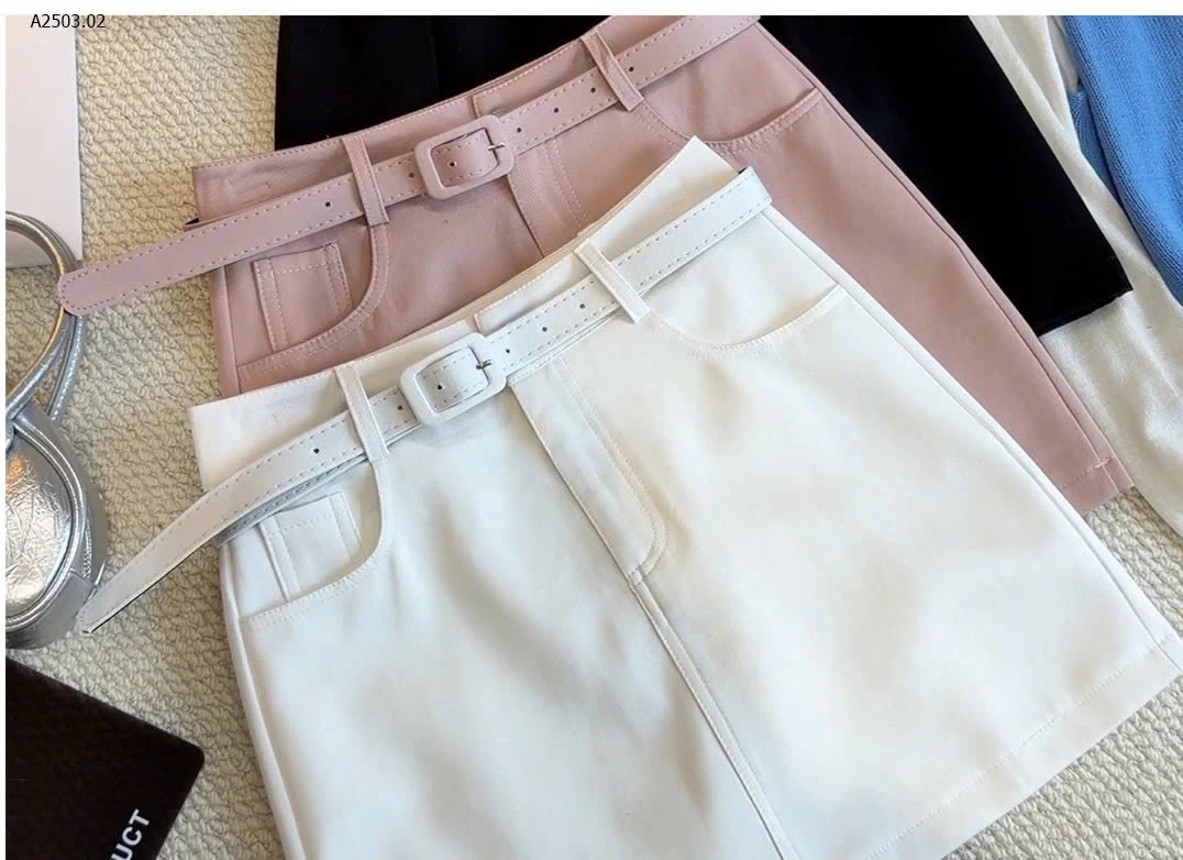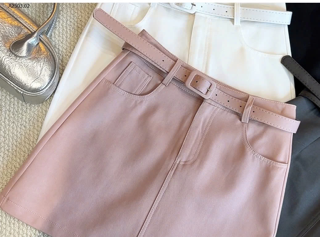 🍑Chất liệu dày dặn, form đứng đẹp, lên dáng cực xinh. Thiết kế chân váy basic kèm belt cùng màu giúp tôn eo, dễ phối với áo sơ mi, áo thun hay croptop
