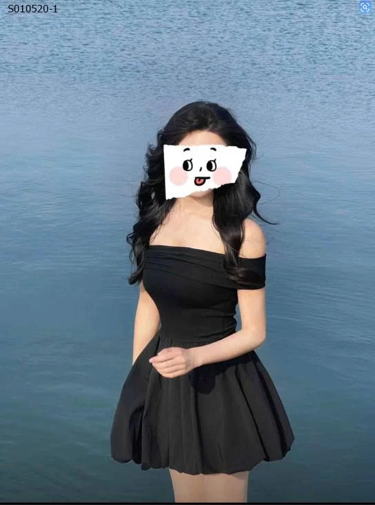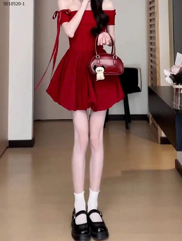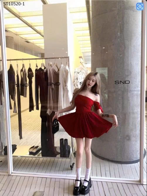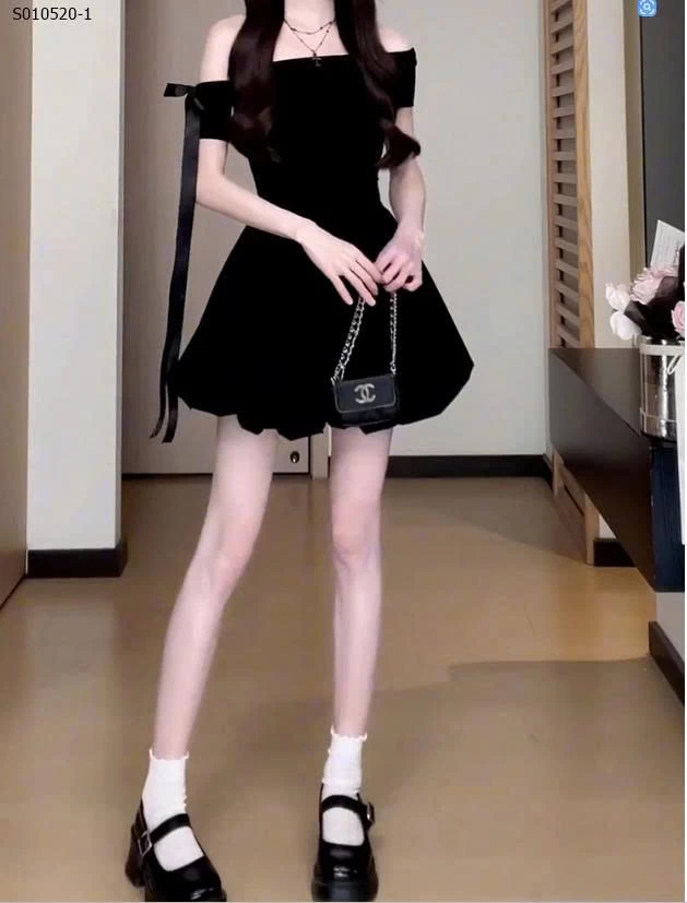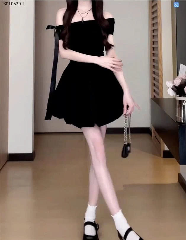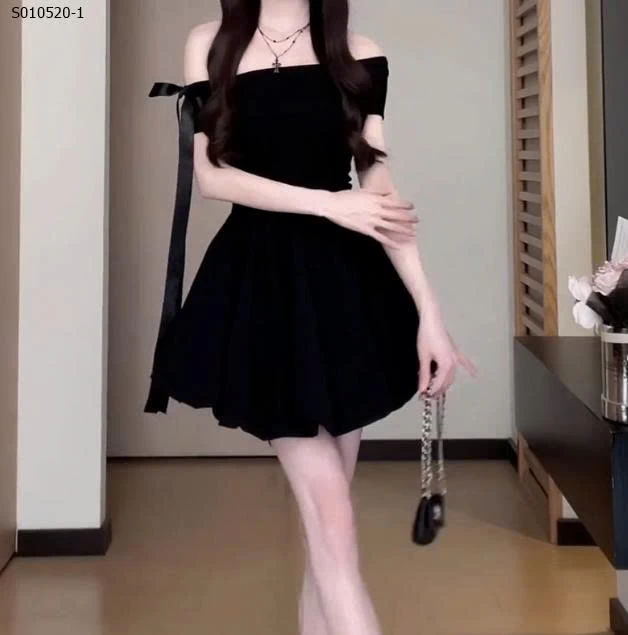 Váy bí ngắn trễ vai một bên vai phong cách Hepburn cho nữ - 410,000
