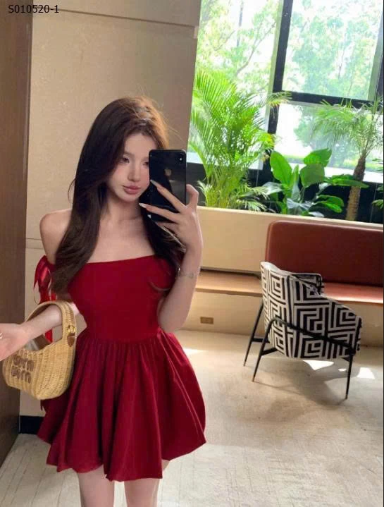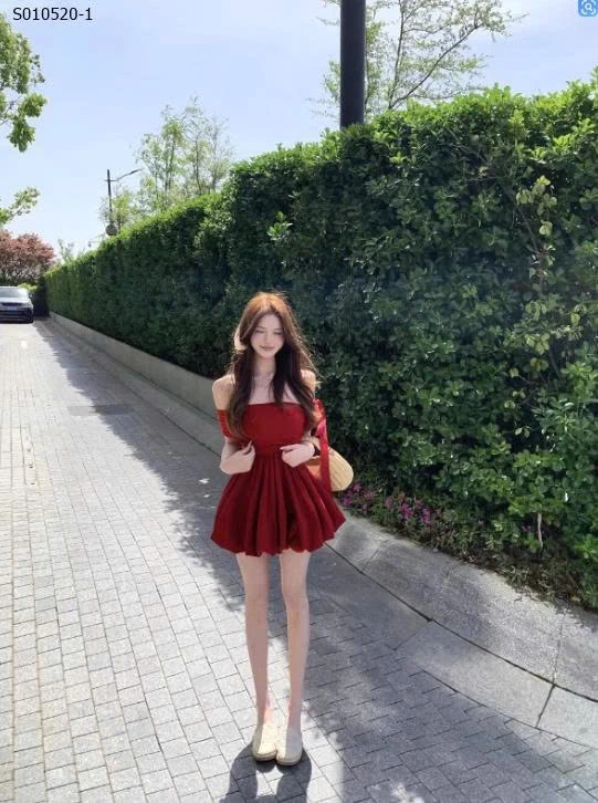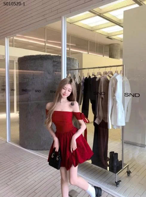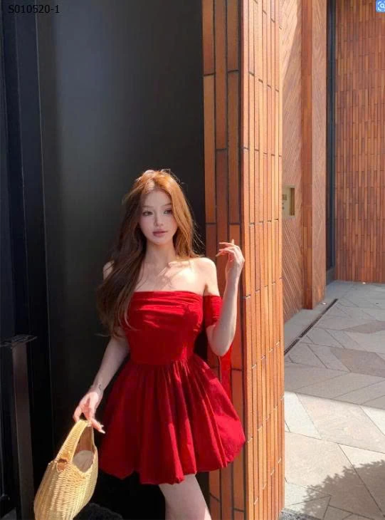 Váy bí ngắn trễ vai một bên vai phong cách Hepburn cho nữ